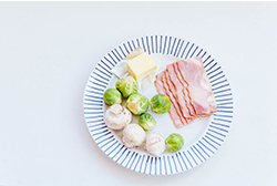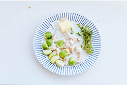 切割配菜,口蘑与抱子甘蓝1/4切开备用