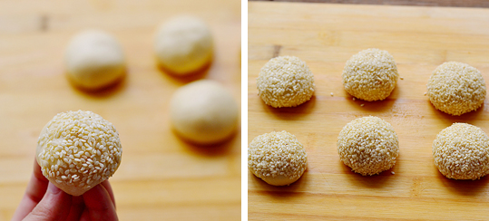 10:拿在手里转一圈沾满白芝麻。