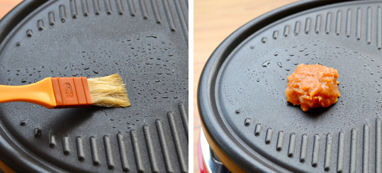 19:烤炉上刷层油。(可以用平底锅煎鸡肉片)
