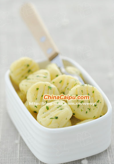2、加面粉时,要分次少量的添加,每次加过后,要轻轻的揉,如果看到土豆能揉成团,就马上停止,不要再加入面粉了。配方中的面粉数量仅为参考数量。