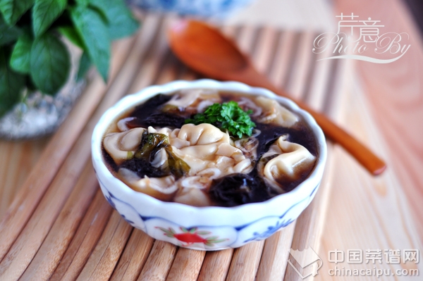 汤料:乌鸡原汤,虾皮少许,紫菜少许,香菜叶少许,鲜味酱油适量,醋适量,香油少许
