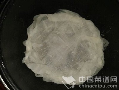 3、这里我们要用到电饭锅,我们把纸这样铺在电饭锅里,大约三四层就可以了。然后倒一点水,不要多,让纸吸满水就可以了。