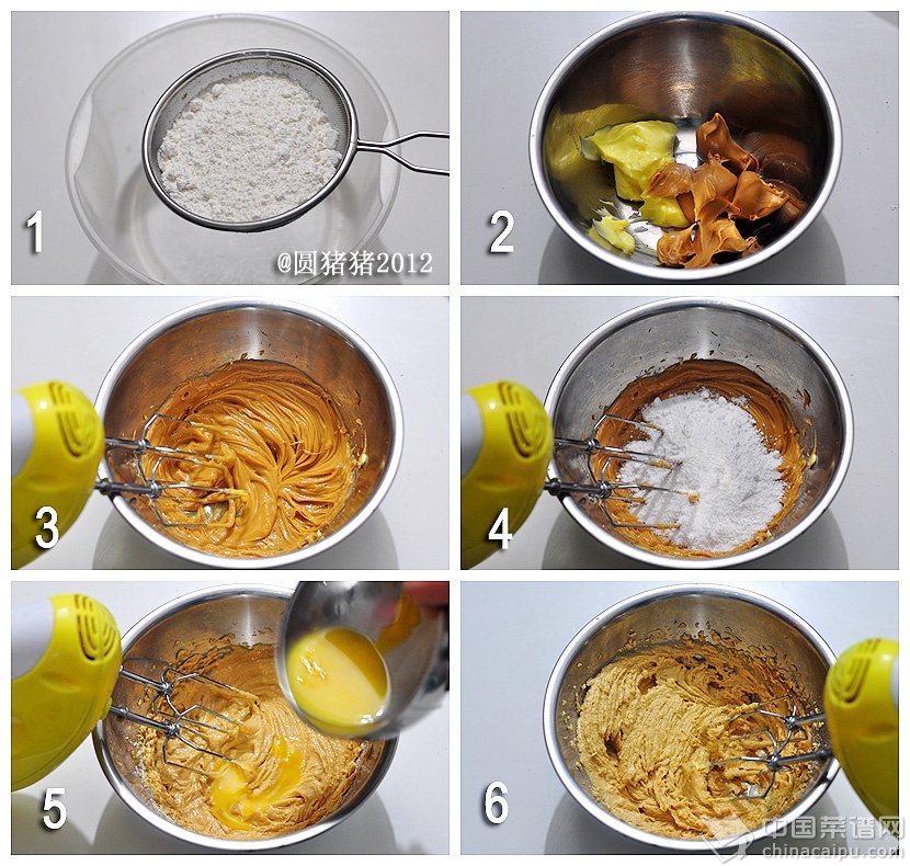3.用打蛋器将 花生酱和黄油搅拌 均匀。