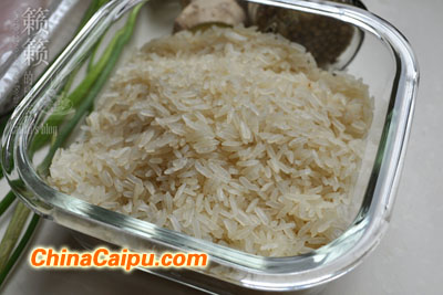材料:新鲜猪肚1个、阴米1碗、生姜1块、小葱2根