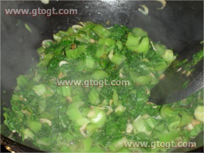 四,芥菜炒至断生,加入少量的糖,盐,味精调味,点入少许料酒起锅。 >> 去中国菜谱网首页