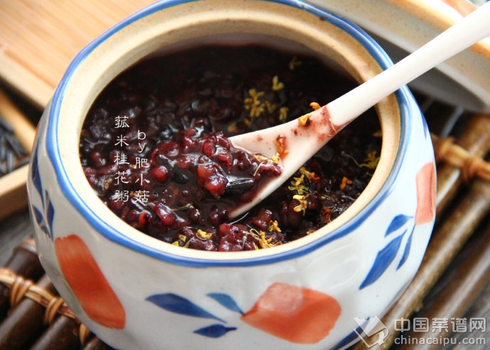 材料:菰米50g,黑米50g,糖桂花一大勺,桂花干适量