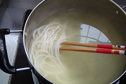 泡好的米粉入沸水煮10分钟至完全变软