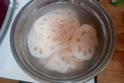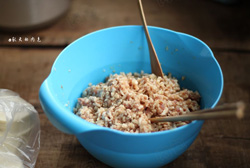 猪肉是在市场直接绞好的,加入切好的葱花,加老抽,生抽,加少量清水朝一个方向搅拌,让肉吃进水分,再加少许油,姜粉,和盐调味,加入切好的莲藕拌匀