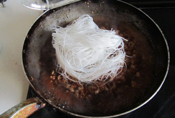 7 烧开后下入泡软的粉丝一起翻炒,再加盖煮上一, 两分钟;