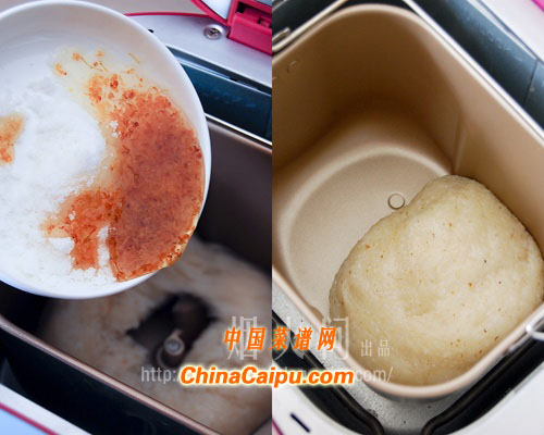 3、等过一小时后,加入绵白糖和糖桂花酱,继续搅拌,一直到程序结束。