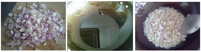 2、炒红葱头的时候要注意千万别炒糊了,否则整道菜会发苦,过犹不及,宁可欠点火也不能过。